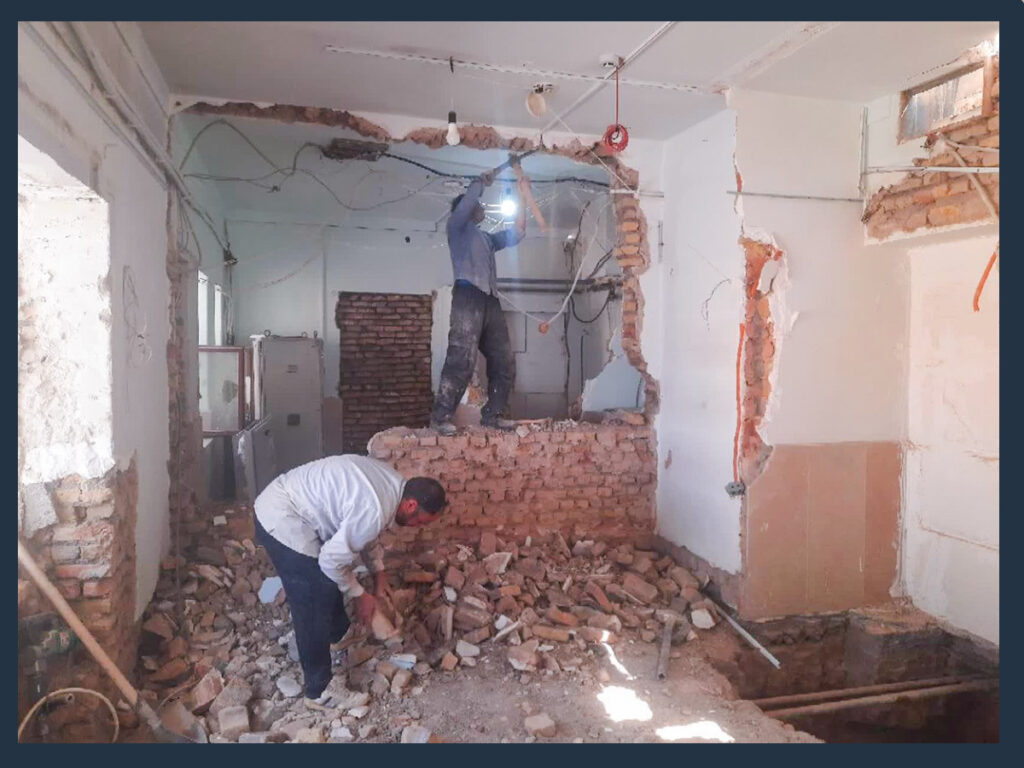 فاز دوم (در حال اجرا): نصب و تقویت سه ستون، پل‌گذاری و حذف دیوارهای باربر برای ایجاد فضای بستری جدید.